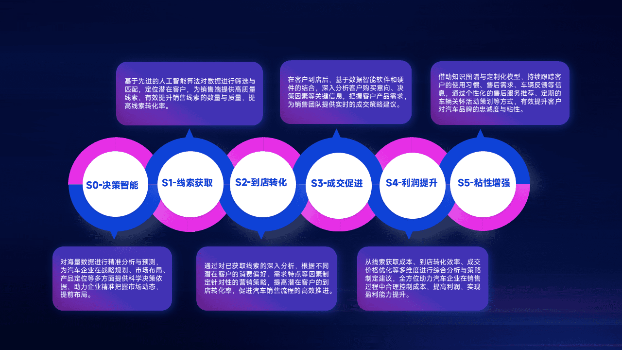 通过拓宽潜在客户来源、、优化线索分配并提高到店转化率,,,,以增强销售效率。。。同时,,,,利用线索数据不断优化分析模型,,,有效提升转化率,,,扩大营销影响力。。
